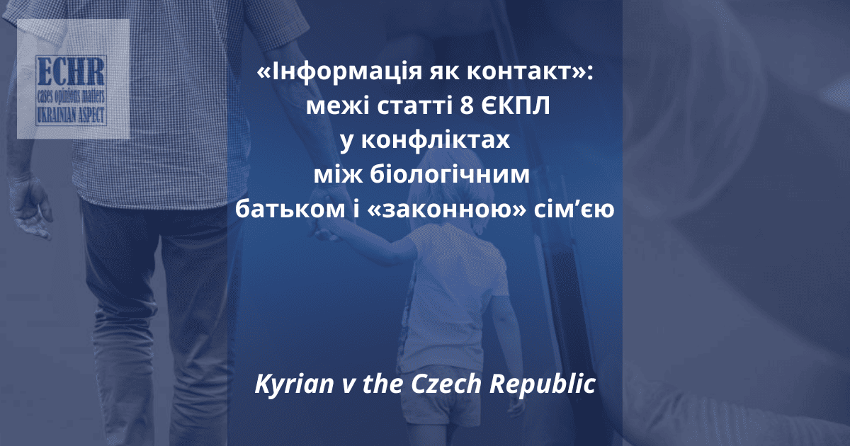 Новини Статті Завантаження... «Інформація як контакт»: межі статті 8 ЄКПЛ у конфліктах між біологічним батьком і «законною» сім’єю (аналіз справи Kyrian v the Czech Republic) Автор: ECHR: Ukrainian Aspect 274