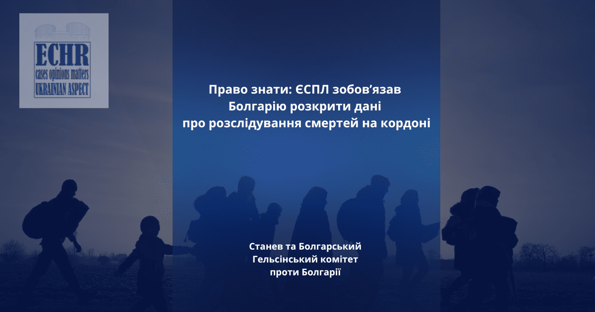Новини Статті Завантаження... Право знати: ЄСПЛ зобов’язав Болгарію розкрити дані про розслідування смертей на кордоні Автор: ECHR: Ukrainian Aspect 236