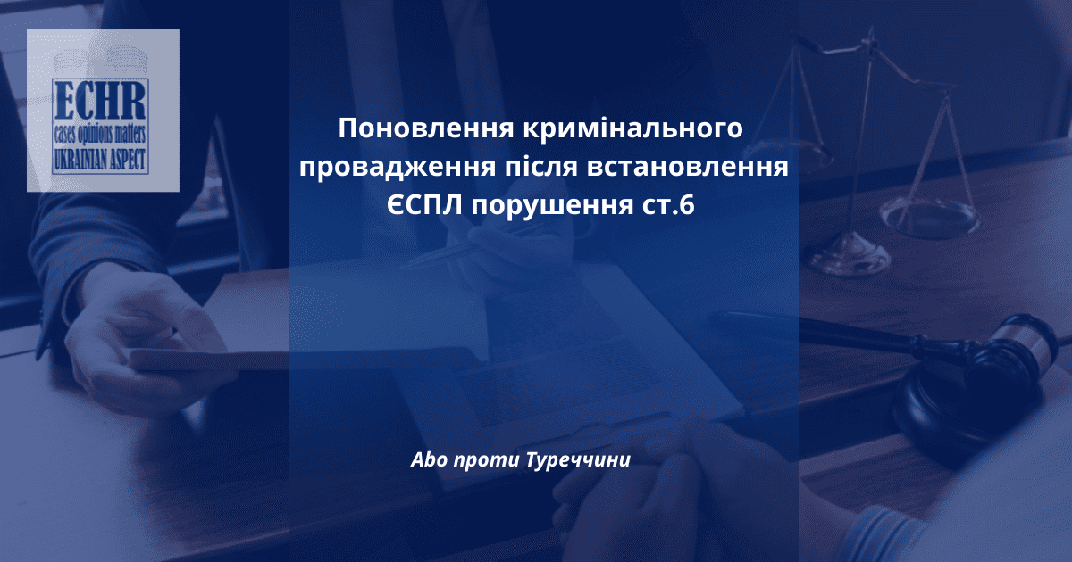 Новини Статті Завантаження... Поновлення кримінального провадження після встановлення ЄСПЛ порушення статті 6 Конвенції: рішення у справі «Або проти Туреччини» Автор: ECHR: Ukrainian Aspect 580