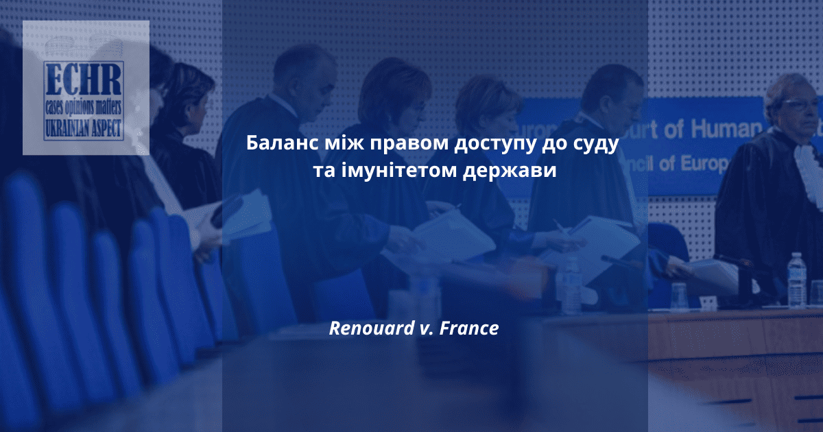 Новини Статті Завантаження... Баланс між правом доступу до суду та імунітетом держави: аналіз рішення ЄСПЛ у справі «Ренауар проти Франції» Автор: ECHR: Ukrainian Aspect 565