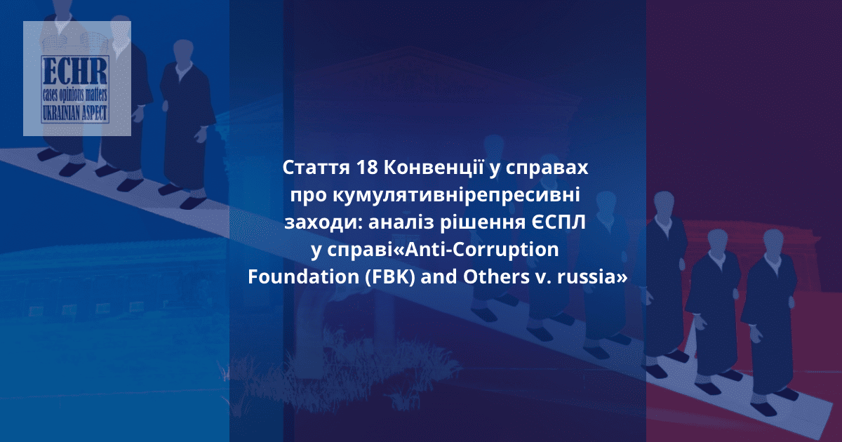 Новини Статті Завантаження... Стаття 18 Конвенції у справах про кумулятивні репресивні заходи: аналіз рішення ЄСПЛ у справі «Anti-Corruption Foundation (FBK) and Others v. russia» Автор: ECHR: Ukrainian Aspect 310