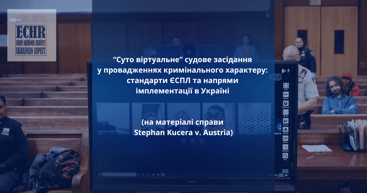 Новини Статті Завантаження... «Суто віртуальне» судове засідання у провадженнях кримінального характеру: стандарти ЄСПЛ та напрями імплементації в Україні (на матеріалі справи Stephan Kucera v. Austria) Автор: ECHR: Ukrainian Aspect 359