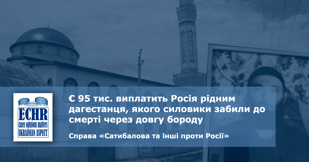 рішення ЄСПЛ у справі «Сатибалова та інші проти Росії» ECHR: Ukrainian Aspect автор 20 Липня 2020 | 242 | Підпишись прямо зараз! Заповни форму, щоб отримувати новини на пошту