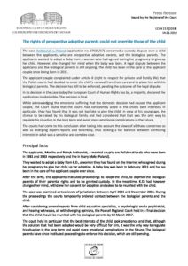 Decision Antkowiak v. Poland – child custody dispute between prospective adoptive parents and biological parents ECHR: Ukrainian Aspect автор 26 Червня 2018 | 353 | Підпишись прямо зараз! Заповни форму, щоб отримувати новини на пошту