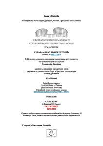 Рішення ЄСПЛ у справі «Леас проти Естонії» (текст) ECHR: Ukrainian Aspect автор 8 Березня 2019 | 993 | Підпишись прямо зараз! Заповни форму, щоб отримувати новини на пошту