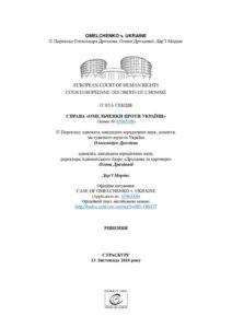 Рішення ЄСПЛ у справі “Омельченки проти України” (текст рішення українською) ECHR: Ukrainian Aspect автор 22 Березня 2019 | 442 | Рішення ЄСПЛ у справі “Омельченки проти України” (текст рішення українською) Підпишись прямо зараз! Заповни форму, щоб отримувати новини на пошту