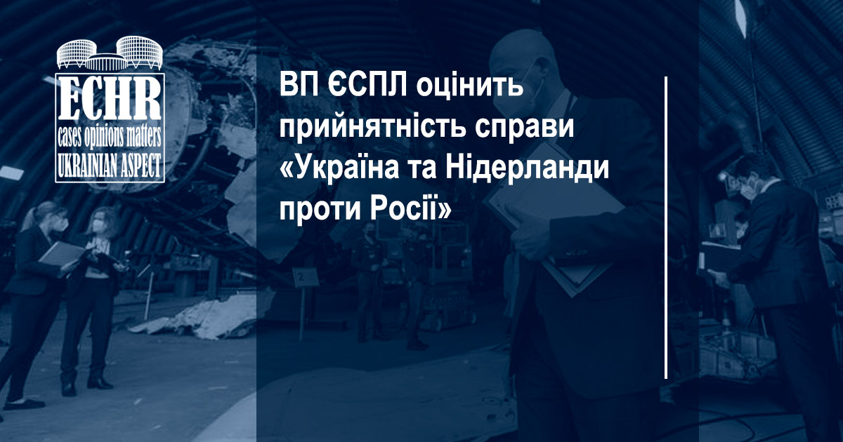 ВП ЄСПЛ оцінить прийнятність справи «Україна та Нідерланди проти Росії» ECHR: Ukrainian Aspect автор 10 Листопада 2021 | 158 | Підпишись прямо зараз! Заповни форму, щоб отримувати новини на пошту