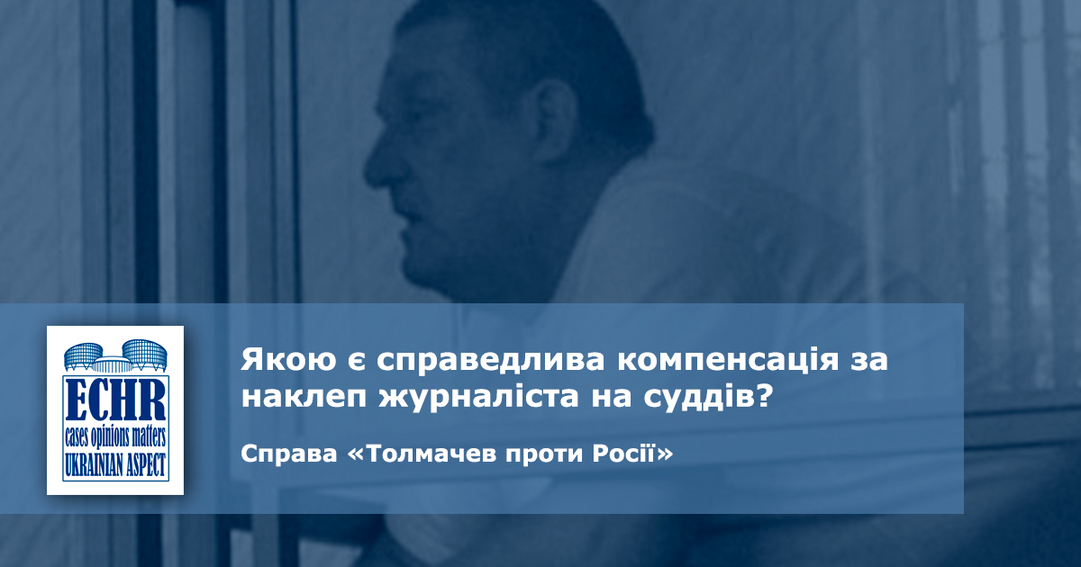 Тоді він звернувся до Європейського суду з прав людини. Посилаючись на ст. 10 (свобода вираження поглядів) Конвенції про захист прав людини і основоположних свобод, Толмачев вважав, що його статті було необхідно розглядати в більш широкому контексті його зусиль розкрити судову корупці.. Він також стверджував, що присуджені суддям компенсації були непропорційно високими.